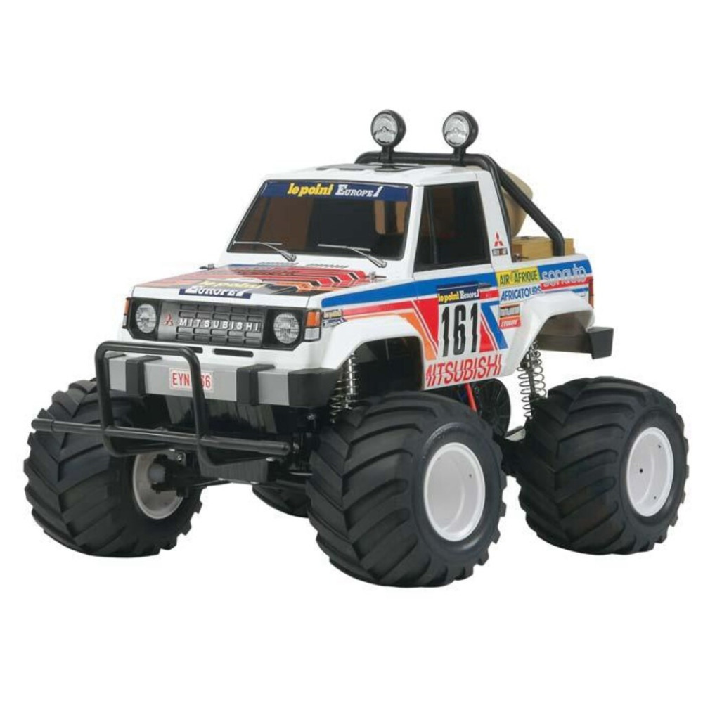 Este é o Veículo Off-Road Montero Wheelie da Tamiya, com alimentação elétrica, controle de rádio de 2,4 GHz, escala 1/10. Da série XB Pro Expert Built da Tamiya.