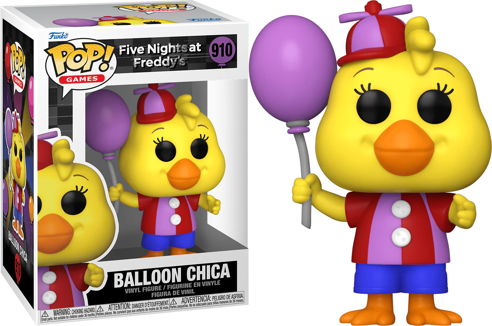 Qual o número do Funko Pop da Balloon Chica de FNAF? O número oficial deste modelo é o #910 da linha Games.