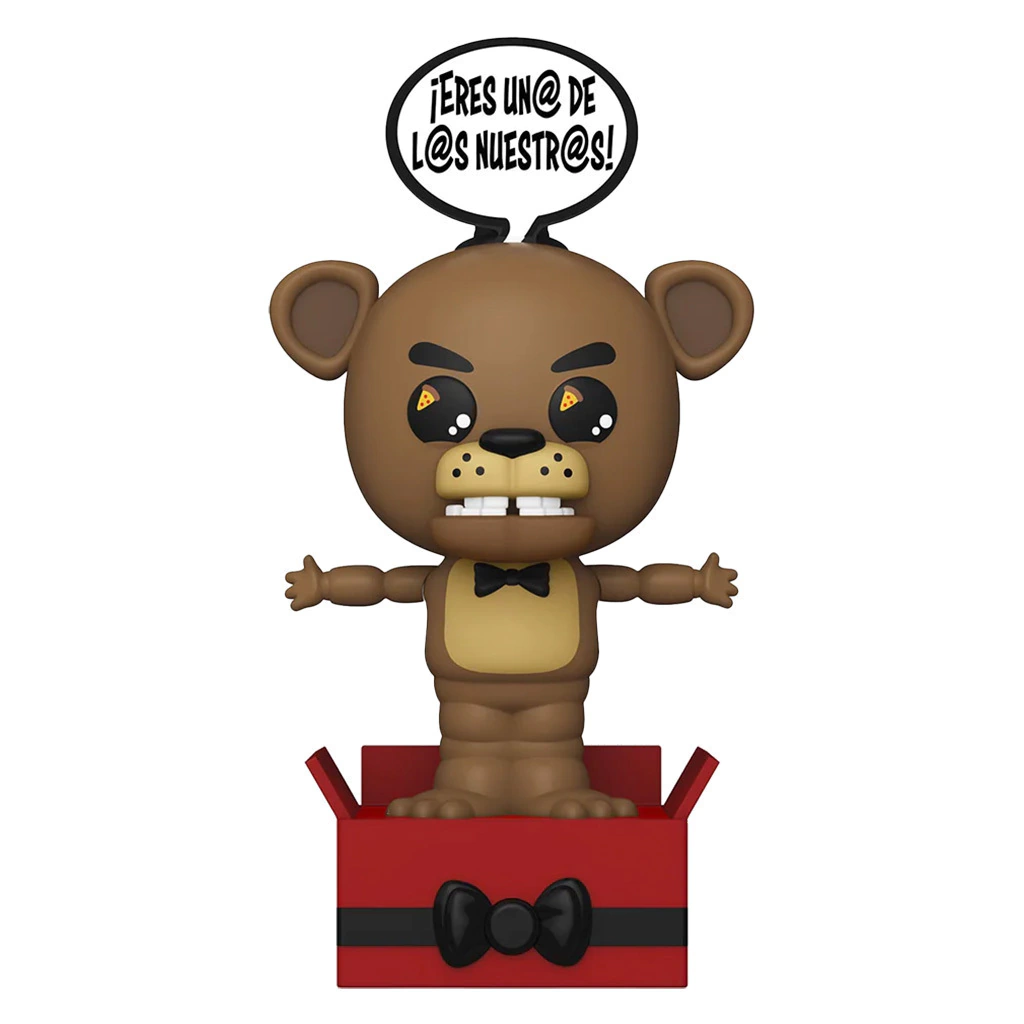 A linha Popsies da Funko redefine o conceito de colecionável ao adicionar interatividade e sentimento à figura. Sob a referência 69323, o Freddy Fazbear deixa de lado os jump scares assustadores para oferecer uma surpresa amigável. Ao pressionar o centro do laço da figura, os braços se abrem e uma mensagem especial aparece acima da cabeça do Freddy. Fabricado com o acabamento de qualidade que só a Funko oferece, este item é ideal para decorar mesas de escritório, quartos ou para ser enviado como um "cartão" físico para um amigo entusiasta de Five Nights at Freddy's. É a combinação perfeita entre a estética clássica do urso animatrônico e a doçura de uma mensagem personalizada.