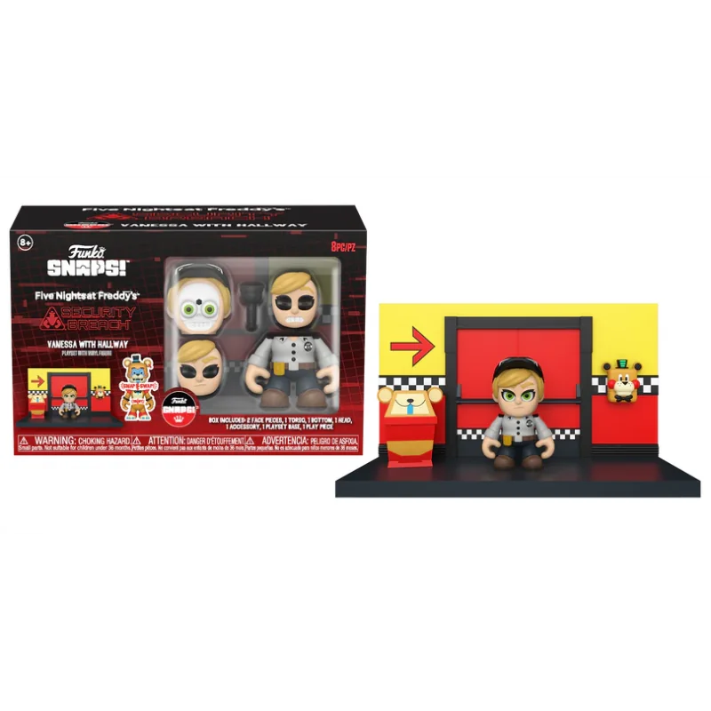A segurança do Pizzaplex está em suas mãos. Com o Funko SNAPS! Vanessa with Hallway Playset, a Funko eleva o colecionismo de Five Nights at Freddy’s a um novo nível de interatividade. Este conjunto não é apenas uma figura estática; ele faz parte da linha SNAPS!, onde você pode trocar o rosto, o corpo e os acessórios da Vanessa, permitindo dezenas de combinações. O playset inclui o cenário do corredor (Hallway), completo com peças modulares que se conectam a outros sets da linha, permitindo que você construa seu próprio labirinto de mistérios e sobrevivência inspirado em Security Breach.
