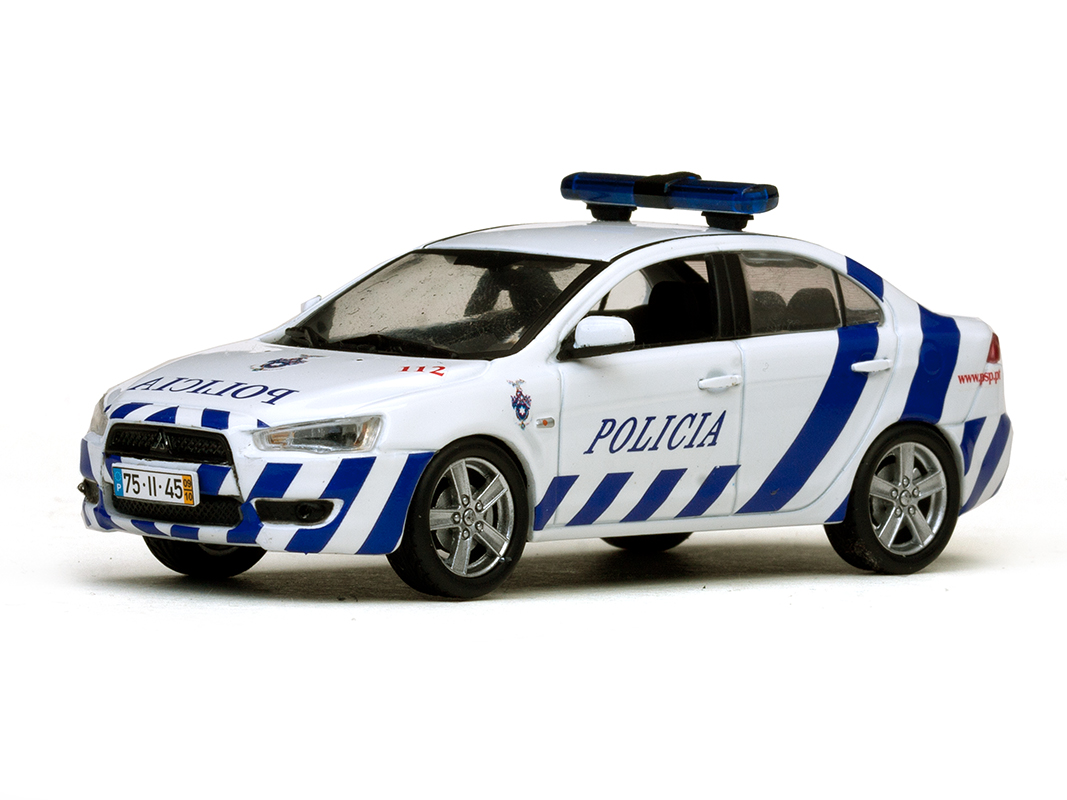 Viva a emoção da polícia portuguesa com esta réplica impecável do Mitsubishi Lancer M.Police, um carro de patrulha que marcou as ruas do país.