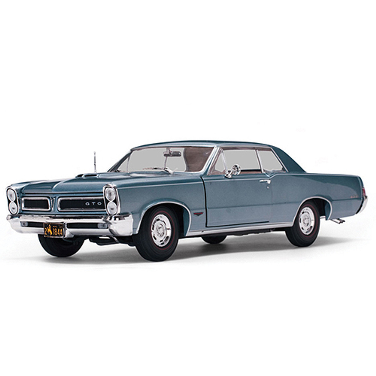 1844 Sun Star EUA - 1965 Pontiac® GTO™ capota rígida. Modelo de carro colecionável fundido em escala 1:18. Este Pontiac GTO em metal fundido sob pressão com capô, portas e porta-malas que podem ser abertos. Rodas dianteiras giratórias. GM é uma marca registrada da General Motors Corporation. Montado em um expositor. Este Pontiac GTO '65 é fabricado pela Sun Star. 1844 é na cor BLUE MIST Slate. Embalado individualmente em uma caixa de janela.