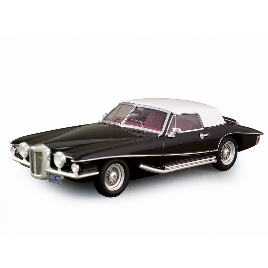 O Stutz Blackhawk 1971 representa o renascimento de uma das marcas mais prestigiadas dos Estados Unidos. Combinando o chassi robusto da General Motors com uma carroceria desenhada por Virgil Exner e produzida à mão na Itália, o Blackhawk tornou-se o símbolo máximo de status para estrelas de Hollywood. Esta réplica da Premium X, na escala 1/43, imortaliza a versão Conversível com Hard-Top na cor Preto, capturando a imponência das suas linhas neoclássicas e o brilho excessivo dos seus detalhes cromados.