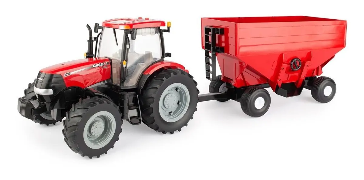 Leve o realismo das grandes fazendas para sua casa com o conjunto Case IH Puma 170. Esta réplica na escala 1/16, pertencente à linha Big Farm da TOMY, destaca-se pela sua robustez e interatividade. O trator Puma 170 é conhecido mundialmente por sua versatilidade e potência, e aqui ele vem acompanhado por um Vagão Graneleiro (Gravity Wagon) funcional, permitindo simular o transporte e a descarga de grãos com total fidelidade.